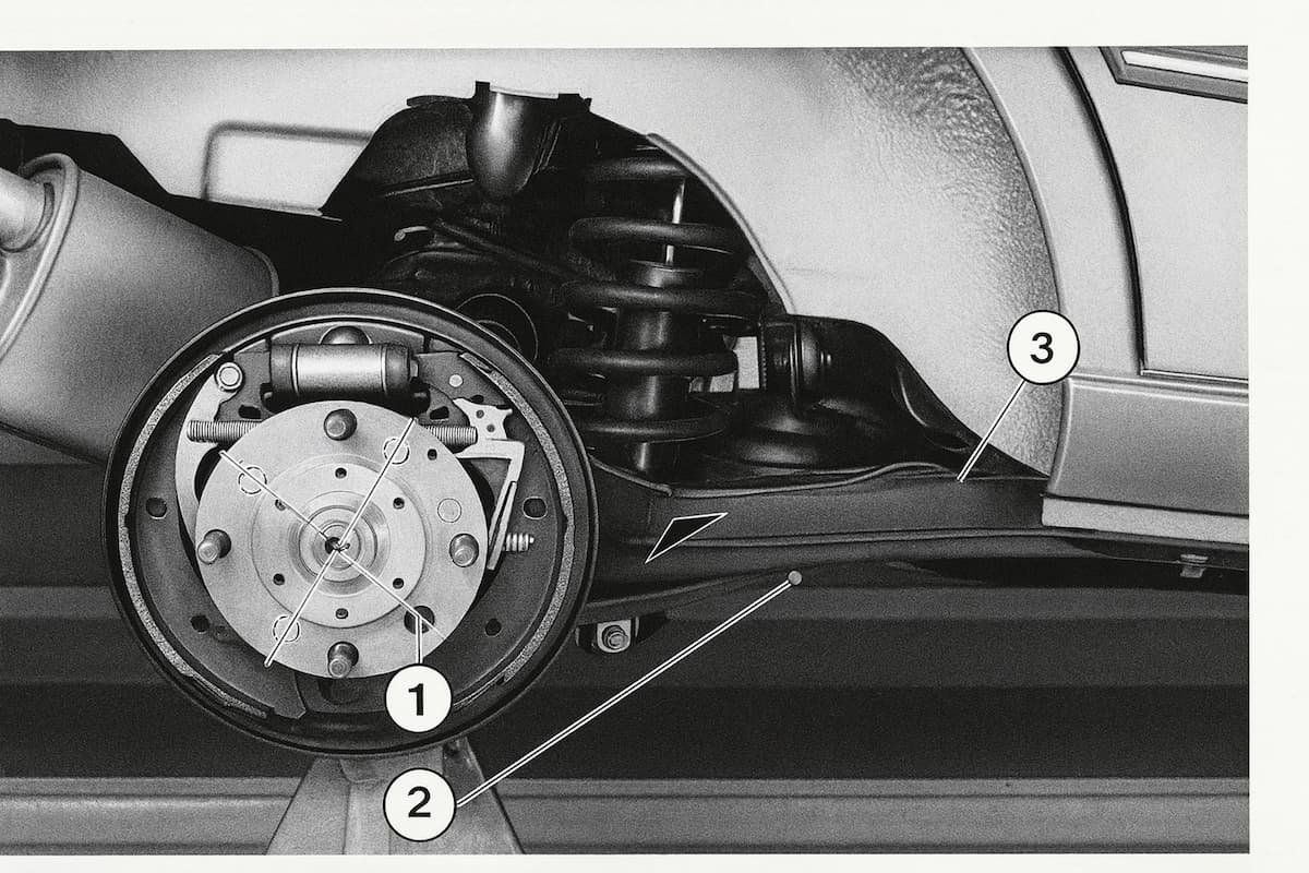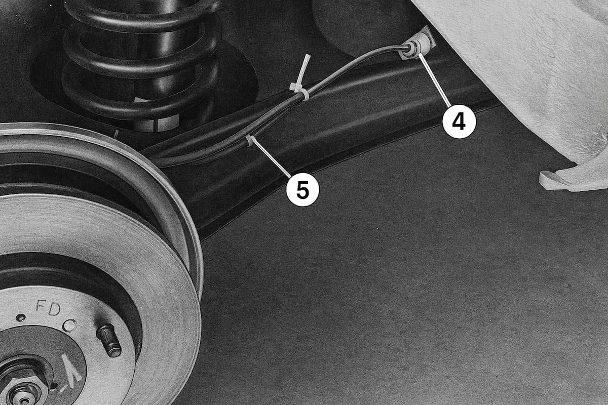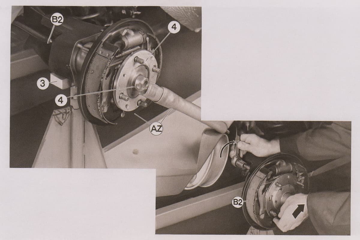 - Desenganchar el cable del freno de mano (4) de su palanca.