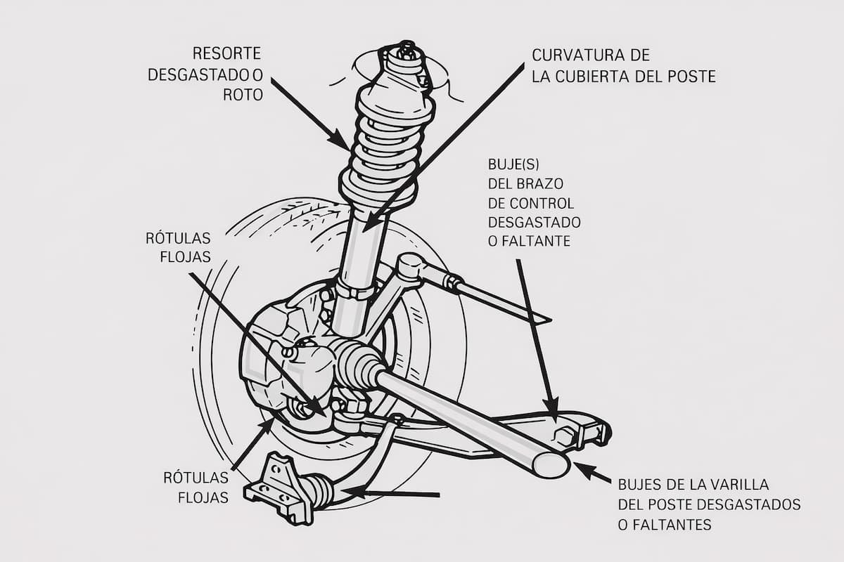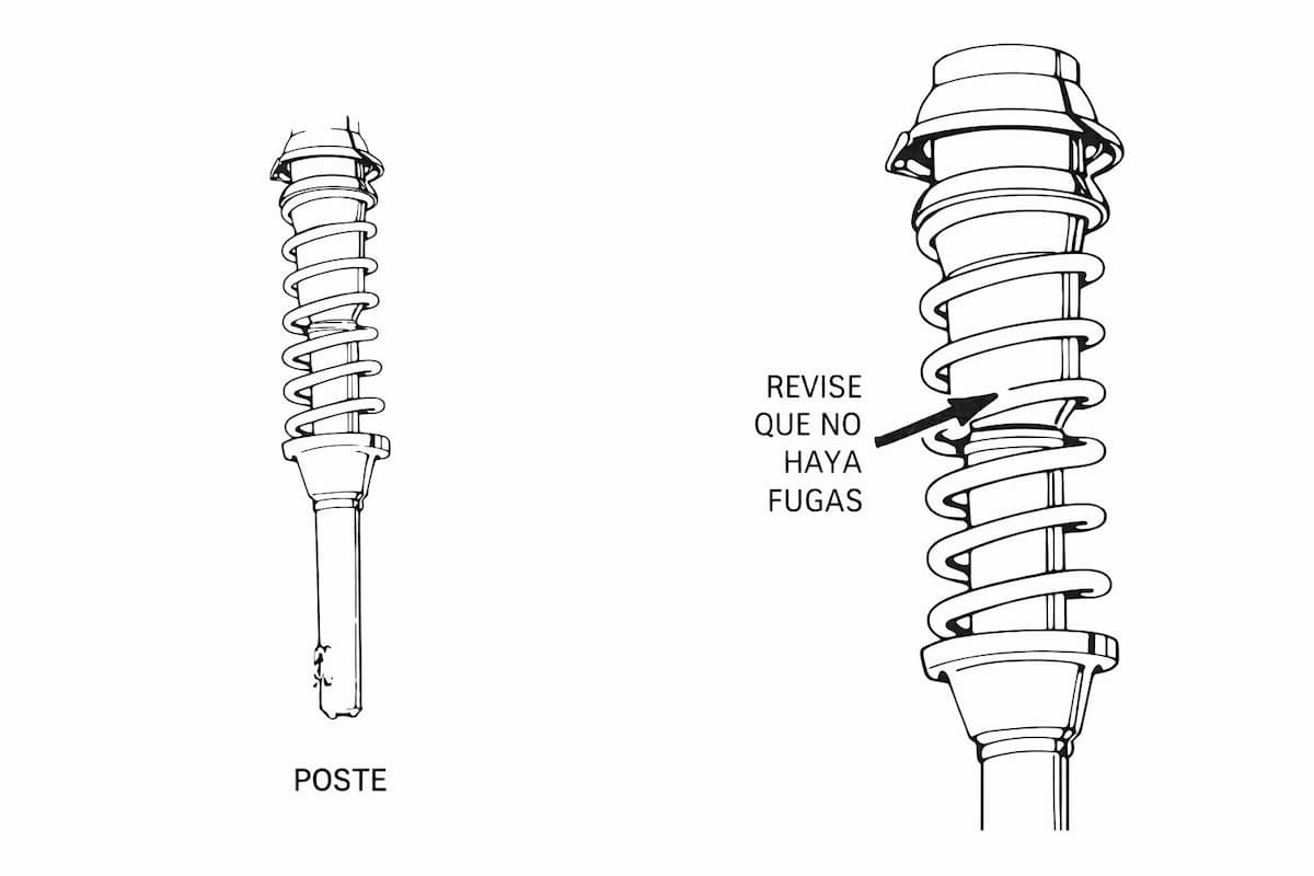- Un cartucho débil del poste, que se puede verificar haciendo rebotar cada una de las esquinas del vehículo, soltando las después. El vehículo no debe rebotar más de una vez, si los cartuchos amortiguadores están en buenas condiciones.