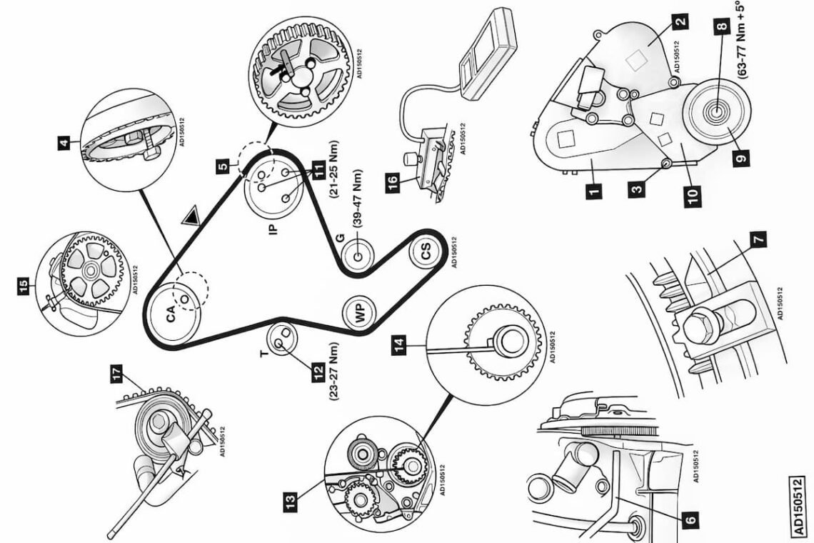 Montaje correa de distribución motor Citroën Peugeot diesel 1.9